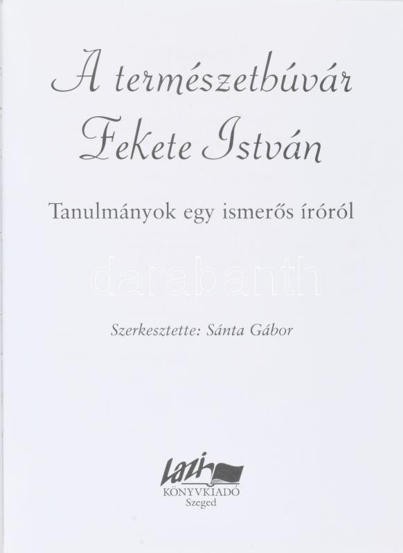A természetbúvár Fekete István. Tanulmányok egy ismerős íróról. Szerk.: Sánta Gábor. Szeged,2002,Lazi, 234+6 p. Kiadói kartonált papírkötés