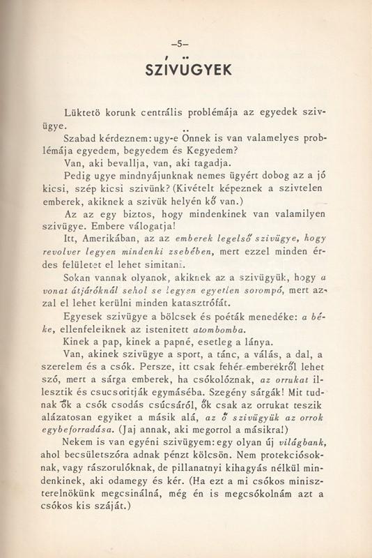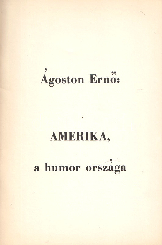 Ágoston-Adler Ernő (1892-1979) könyvvizsgáló, kereskedő, költő, a vészkorszak után Kanadába vándorolt. Humorosnak szánt vicc- és jelenetgyűjteményében a kortárs Amerika arcait kívánta bemutatni. Évszám nélkül megjelent kötete kiadási évét 1970 körülire becsüljük az utolsóként közölt, viccesnek szánt jelenet alapján, mely az az 1964-től kibontakozó, de a nagyközönség számára az 1960-as évek végéig ismeretlennek számító amerikai hippimozgalmat vonja görbe tükör elé. Rejtélyes okból a szerző következetesen hippiseknek nevezi a radikális ifjúsági szubkultúra tagjait.