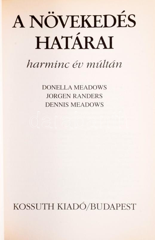 Donella Meadows - Jorgen Randers - Dennis Meadows: A növekedés határai. Harminc év múltán. Ford.: Déri Andrea. Bp., 2005, Kossuth, 318 p. Kiadói papírkötés.