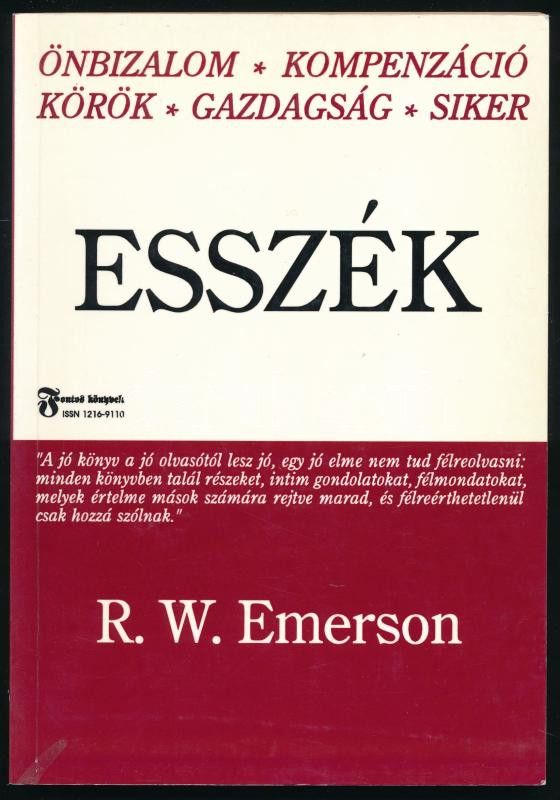 Emerson, R. W.: Esszék. Önbizalom, kompenzáció, körök, gazdagság, siker. 1995, Bagolyvár. Kiadói papírkötés.