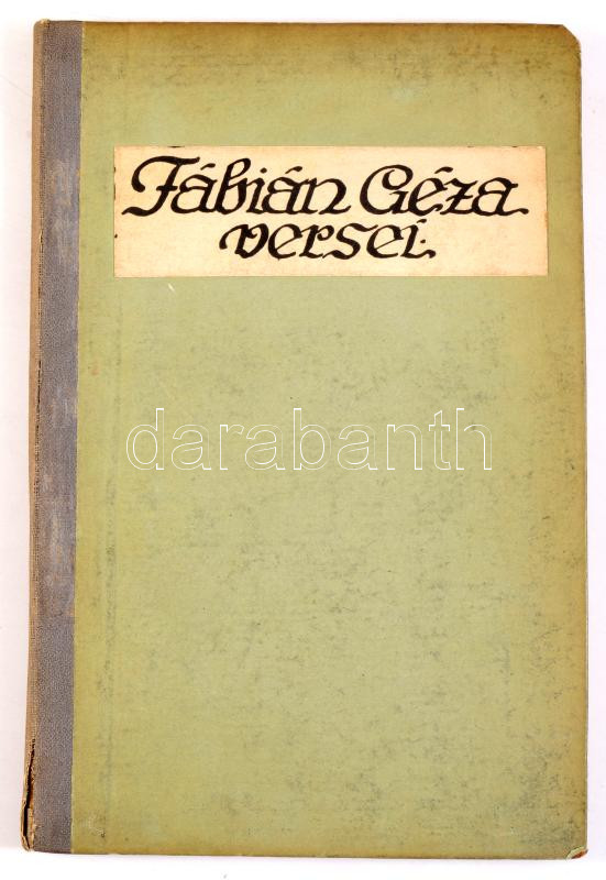 Fábián Géza: Versei Bp. 1916. "Élet." 77 l. 1 sztl. lev. Az elsőkötetes szerző könyvéről Tóth Árpád írt elismerő kritikát a Nyugatban. Kiadói félvászon kötésben