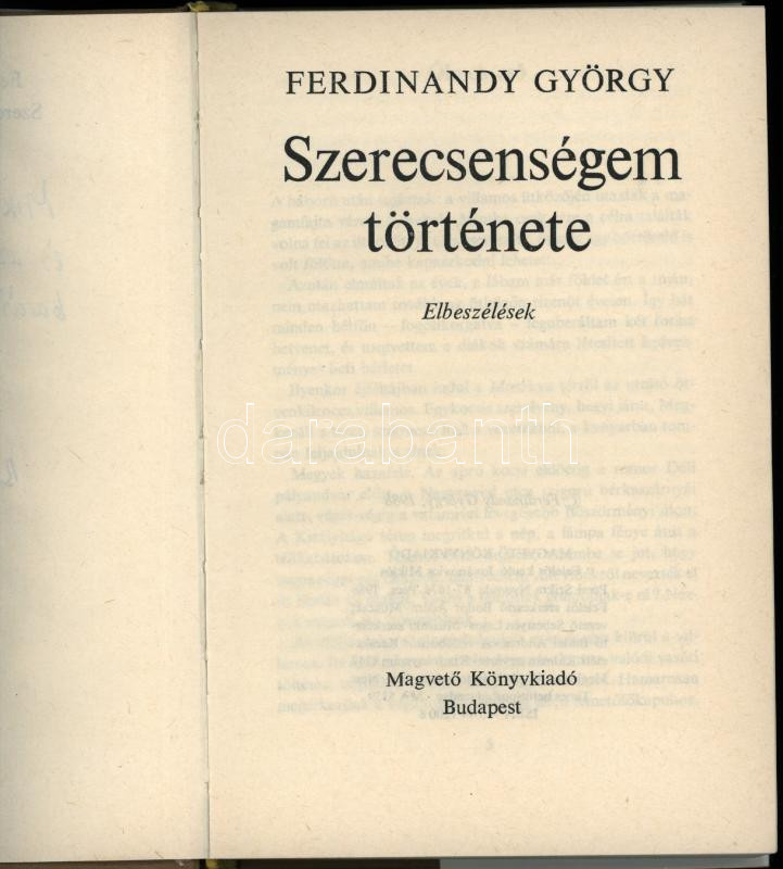 Ferdinandy György: Szerecsenségem története. Elbeszélések! DEDIKÁLT! Bp., 1988, Magvető. Kiadói egészvászon kötés, papír védőborítóval, jó állapotban.