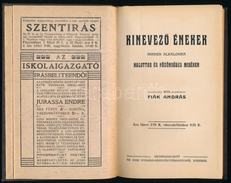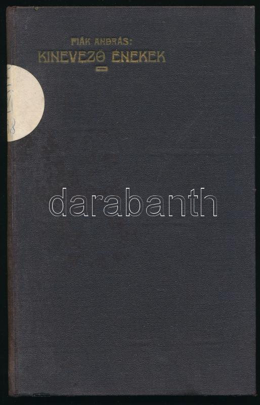 Fiák András: Kinevező Énekek. Eger, nincs évszám, Egri Nyomda-Részvénytársaság. Kiadói egészvászon-kötésben. Volt könyvtári könyv
