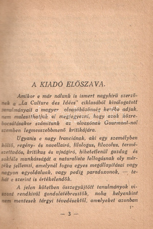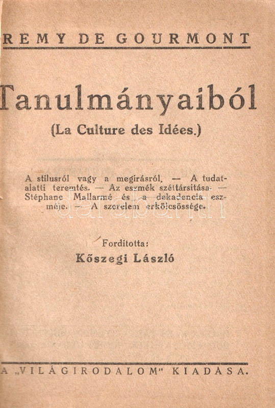 Rémy de Gourmont Tanulmányaiból. (La Culture des Idées.) Fordította: Kőszegi László.