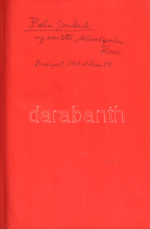 Dedikált: "Belia Gyuriéknek nagy szeretettel, öleléssel ajánlom: Ferenc. Budapest, 1969. március 14."
