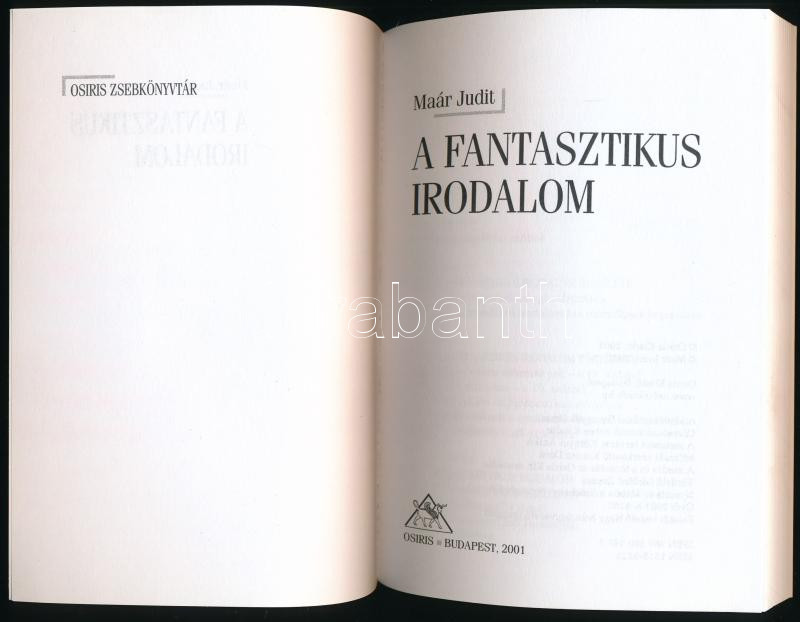 Maár Judit: A fantasztikus irodalom. Osiris zsebkönyvtár. Bp., 2001, Osiris, 189+[3] p. Kiadói papírkötés.