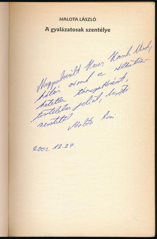 Malota László: A gyalázatosok szentélye. Bp., 2002, Konkrét Könyvek. DEDIKÁLT Havas Henriknek! 237p. Kiadói papírkötés, jó állapotban.