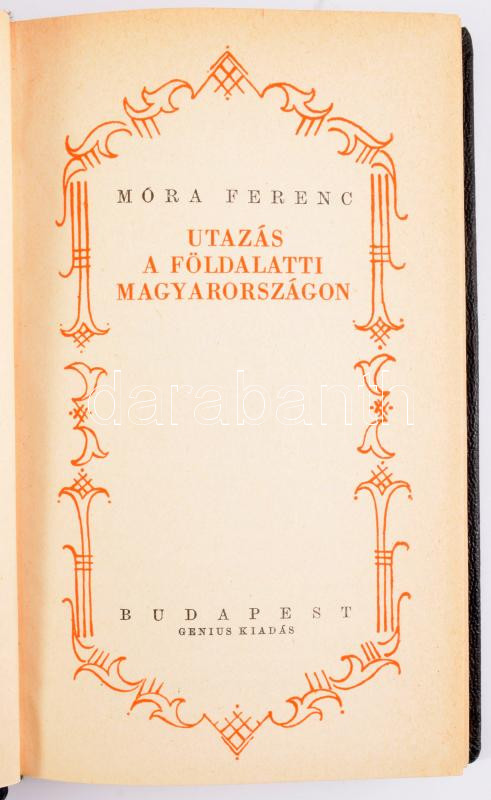 Móra Ferenc: Utazás a föld alatti Magyarországon. Bp., Genius. 290p. Kaidói bőr kötés, . Somogyi Elemér ex libris (avantgárd, kissé kopottas állapotban.
