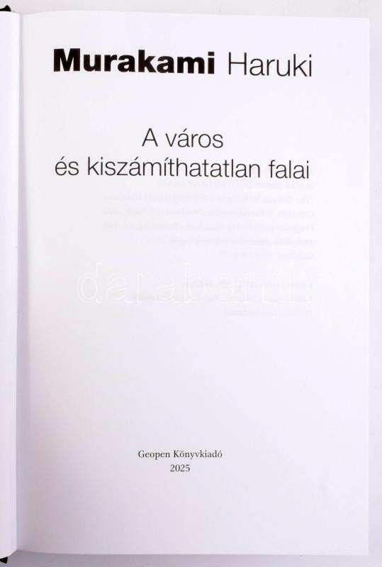Murakami Haruki: A város. A város és kiszámíthatatlan falai. 2025, Geopen. 613p. Kiadói kartonált kötés, papír védőborítóval, jó állapotban.