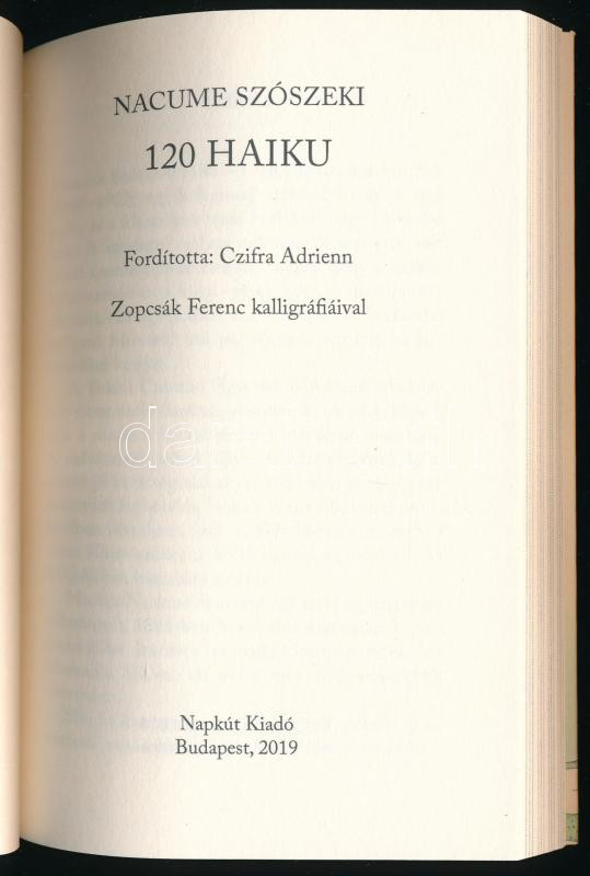 Nacume Szószeki: 120 haiku. Fordította: Czifra Adrienn. Bp., 2019, Napkút Kiadó. 106p. Kiadói papírkötés, jó állapotban.
