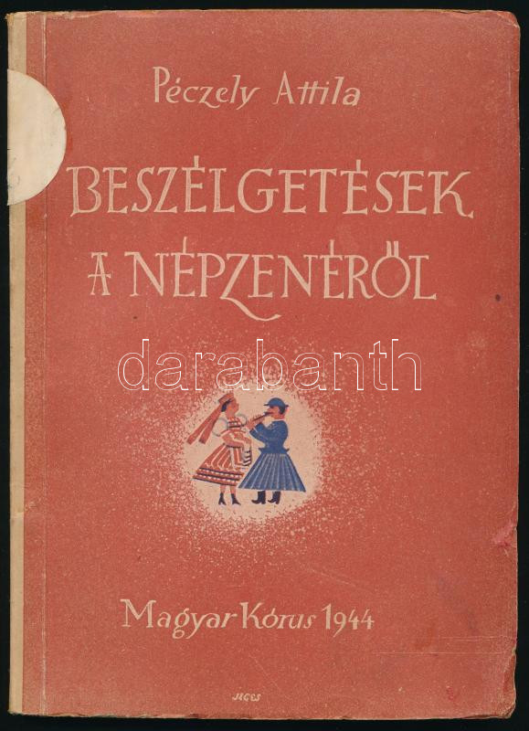Péczely Attila. Beszélgetések a Népzenéről. Bp., 1944, Athenaeum. Kiadói papírkötés, a borítón némi kopással, volt könyvtári könyv.