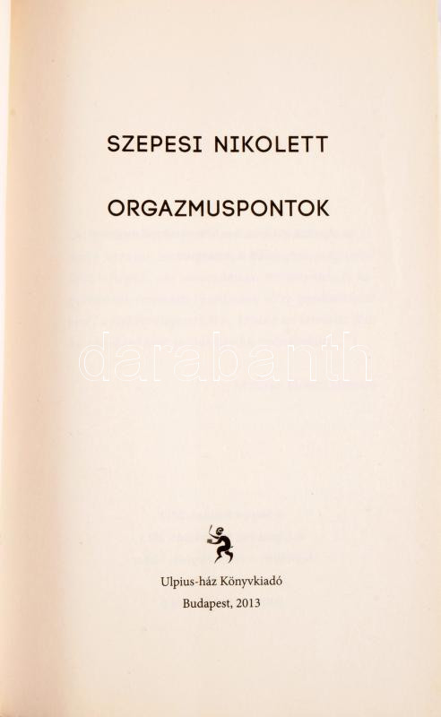 Szepesi Nikolett: Orgazmuspontok. Bp., 2013, Ulpius-ház. Kiadói papírkötés, előzéklap szakadt, egyébként jó állapotban.