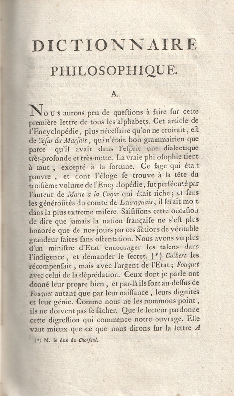 Dictionnaire philosophique. Tome I.