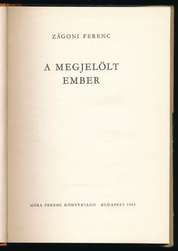 Zágoni Ferenc: A megjelölt ember. Szász Endre rajzaival. Bp., 1964, Móra, 227+[1] p. Első kiadás. Kiadói félvászon-kötés, kiadói papír védőborítóban.