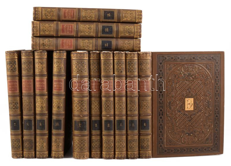 b. Eötvös József munkái sorozat 13 kötete. Bp., 1891-1892. Ráth Mór. Aranyozott, festett, egészvászon sorozatkötésben, jó állapotban