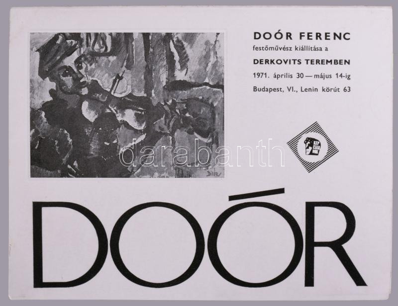 1971 Doór Ferenc festőművész kiállítása a Derkovits Teremben. Kihajtható kiállítási meghívó. A művész, Doór Ferenc (1918-2015) festő-grafikus által DEDIKÁLT példány. Bp., Athenaeum-ny.