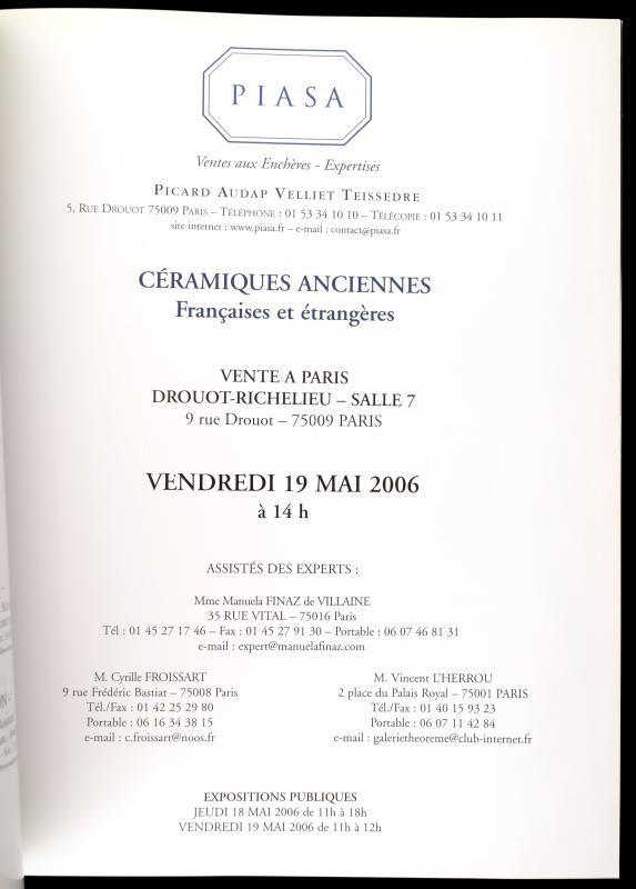 2006 Piasa aukciós katalógus, porcelánok témában.