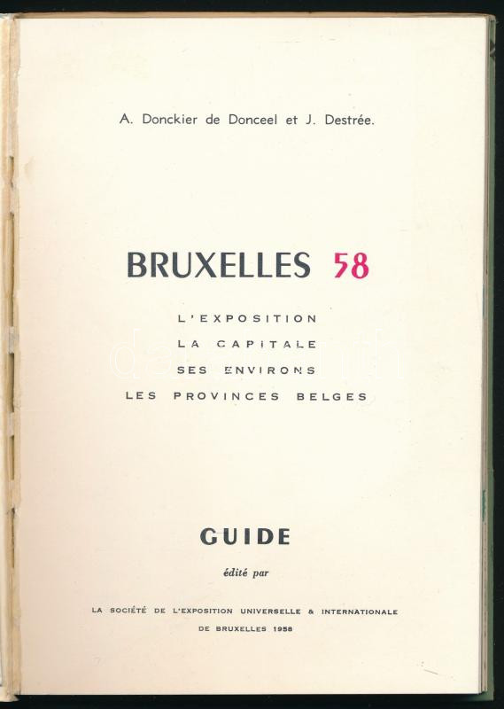 Bruxelles 58. L'Exposition. La Capiale [...]. Guide. Bruxelles, 1958. Kiadói papírkötés, térképpel, jó állapotban.