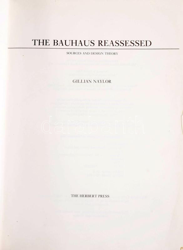 Gillian Naylor: The Bauhaus Reassessed. London, 1985, Herbert Press, kiadói kopott papírkötés, angol nyelven. Gazdagon illusztrált kiadvány a bauhaus stílusról. Volt könyvtári példány.