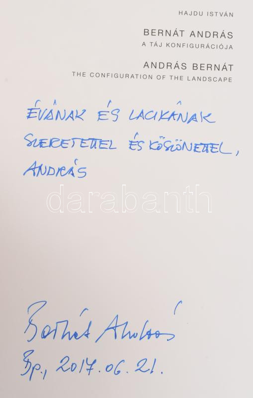 Hajdu István: Bernát András: A táj konfigurációja. András Bernát: The Configuration of the Landscape. A művész, Bernát András (1957-) Munkácsy Mihály-díjas festőművész által DEDIKÁLT példány! Paks, 2017, Paksi Képtár, 259+1 p. Magyar és angol nyelven. Gazdag képanyaggal illusztrált. Kiadói egészvászon-kötés.