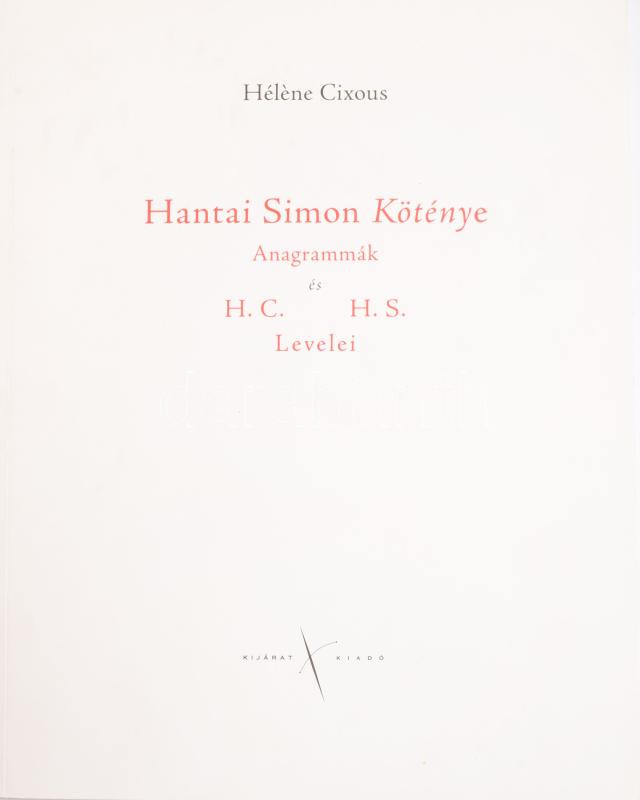 Héléne Cixous: Hantai Simon köténye. Anagrammák és H. C. H. S. levelei. Ford.: Házas Nikoletta, Orbán Jolán. Bp., 2010., Kijárat Kiadó, 94 p. Gazdag képanyaggal, köztük Hantai Simon munkáival is illusztrált. Kiadói papírkötés.