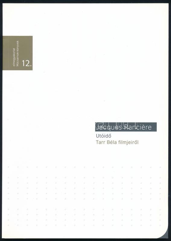 Jacques Ranciére: Utóidő. Tarr Béla filmjeiről. Bp., 2013, Műcsarnok Nonprofit Kft. Kiadói papírkötés, jó állapotban.