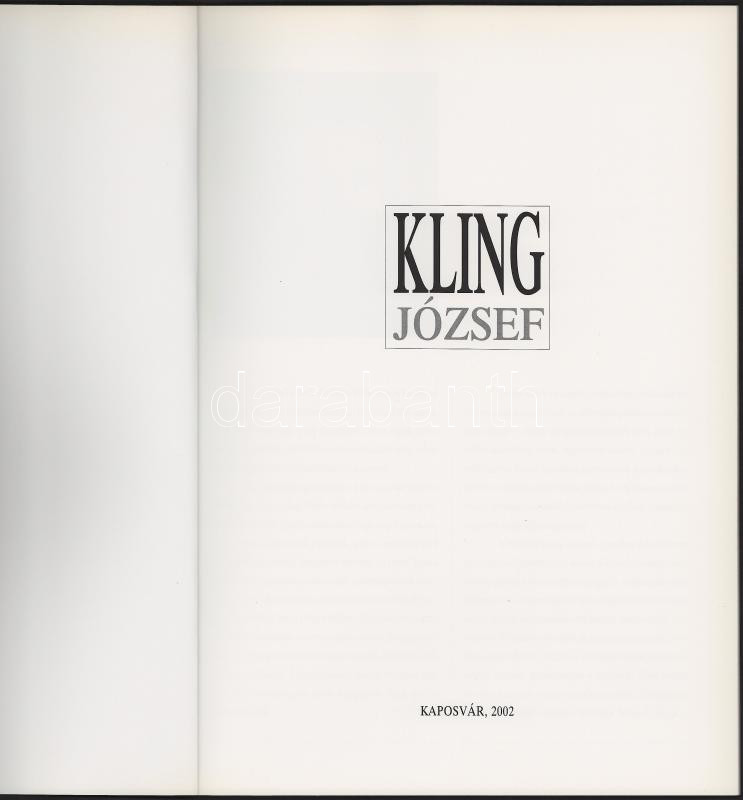 Kling József: Kling. Kaposvár, 2002, (Mandula Press Bt. - ny.), 35+1 p. Gazdag képanyaggal illusztrált. Kiadói papírkötés.