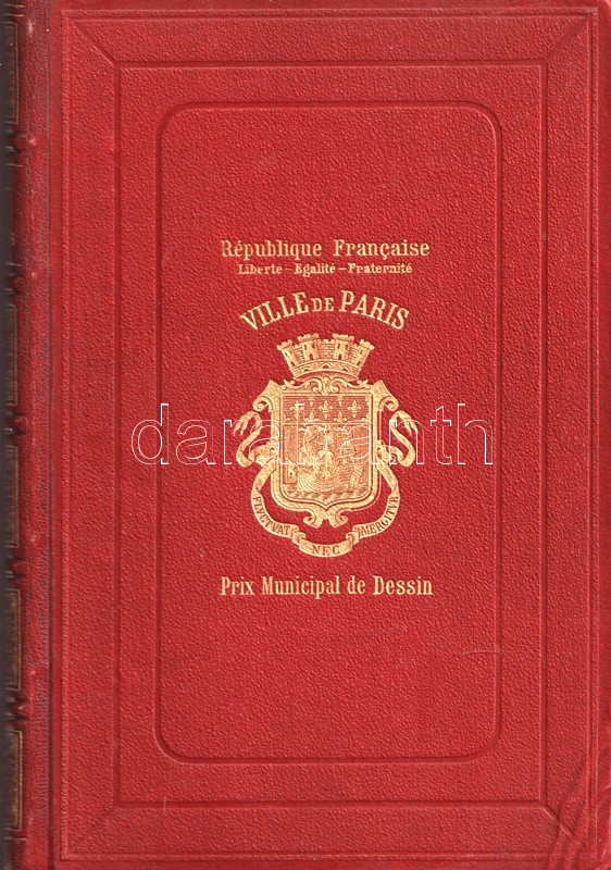 Díszesen aranyozott gerincű, vaknyomásos, első kötéstábláján könyvművészeti elismerést hordozó, egyedi félbőr kötésben, aranyozott festésű lapszélekkel. Az első kötéstáblán Párizs városának aranyozott címere körül a "Republique Française: Liberté -- Égalité -- Fraternité" illetve a "Ville de Paris: Prix Municinal de Dessin" feliratok szerepelnek.