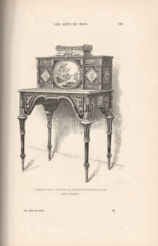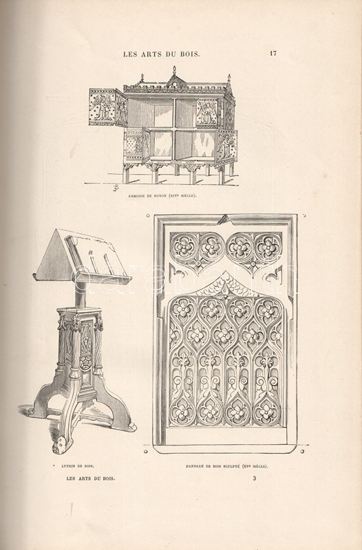 Bútorművészeti történeti albumunk a XIV-XIX. század stílusait és művészeti áttöréseit mutatja: könyvállványok, faragott szószékek, ajtók és ládák, ágyak, komódok, szekreterek és tükrös és tükörtelen kredencek, íróasztalok és faragott székek vonulnak fel albumunk lapjain. Az előszót Alfred de Lostalot francia művészettörténész írta.