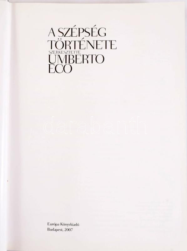 Umberto Eco (szerk.): A szépség története. Ford.: Sajó Tamás. Bp., 2007, Európa, 438+[2] p. Gazdag képanyaggal illusztrálva. Kiadói egészvászon-kötés, kiadói papír védőborítóban.