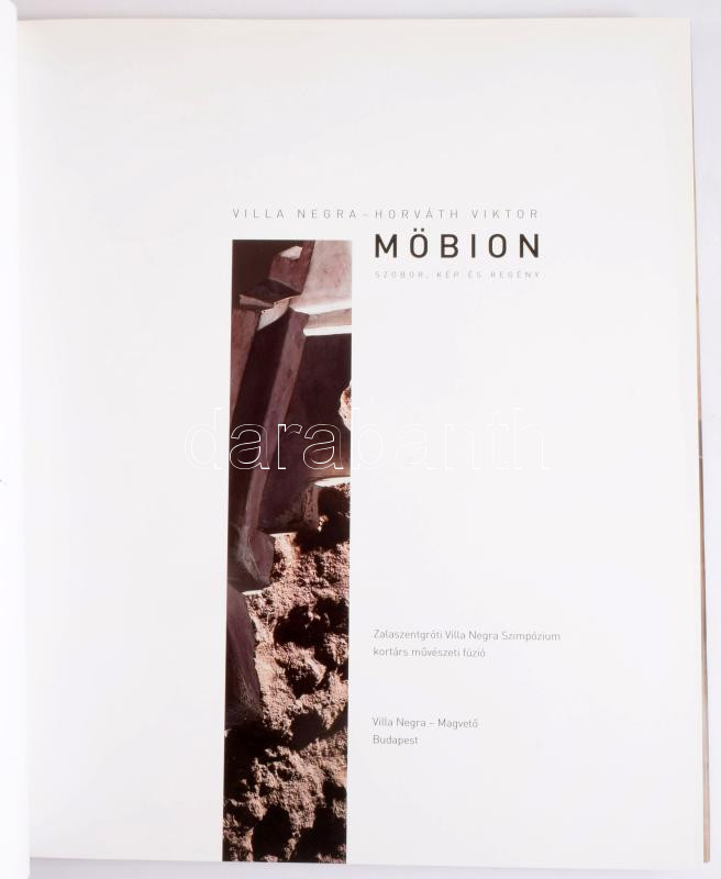 Villa Negra - Horváth Viktor: Möbion. Szobor, kép, regény. Zalaszentgróti Villa Negra Szimpózium kortárs művészeti fúzió. Az egyik művész, az egyesület elnöke, Lelkes Márk (1972-) képzőművész, Cserny-díjas szobrászművész által DEDIKÁLT példány.