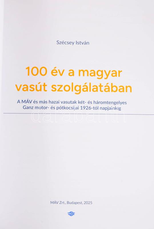 Szécsey István: 100 év a magyar vasút szolgálatában. A MÁV és más hazai vasutak két- és háromtengelyes Ganz motor- és pótkocsijai 1926-tól napjainkig. Bp., 2025, MÁV Zrt., 299 p. Kiadói papírkötés.