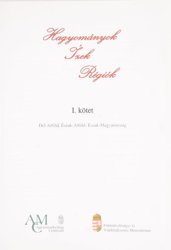 Hagyományok, ízek, régiók. Magyarország hagyományos és tájjellegű mezőgazdasági és élelmiszer-ipari termékeinek gyűjteménye. I-II. köt. Bp., 2001, Kesztler Marketing Kft., 415 p.; 365+[3] p. Kiadói kartonált papírkötés. Megjelent 2000 példányban.