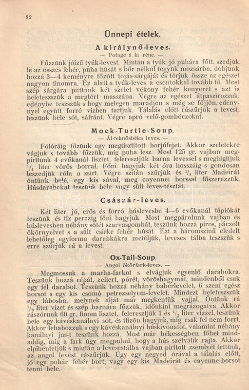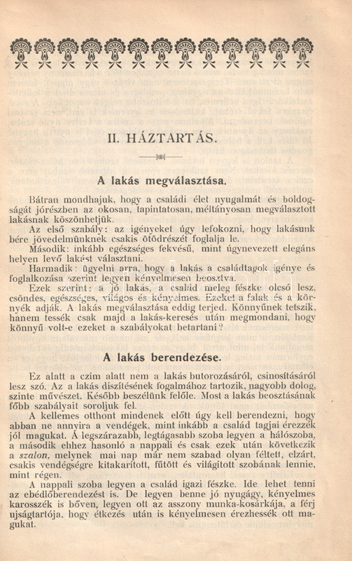 Szabóné Nogáll Janka (1861-1924) ifjúsági és szakÃró, a Divat-szalon szerkesztÅ‘je. Életmód-tanácsadóba és háztartástani eligazÃtásba oltott szakácskönyve elÅ‘ször 1902-ben jelent meg, példányunk a felújÃtott, erÅ‘sen bÅ‘vÃtett második kiadásból való. Oldalszámozáson túl havi könyvelésre szánt táblázatok, illetve kapcsolódó képes hirdetések.