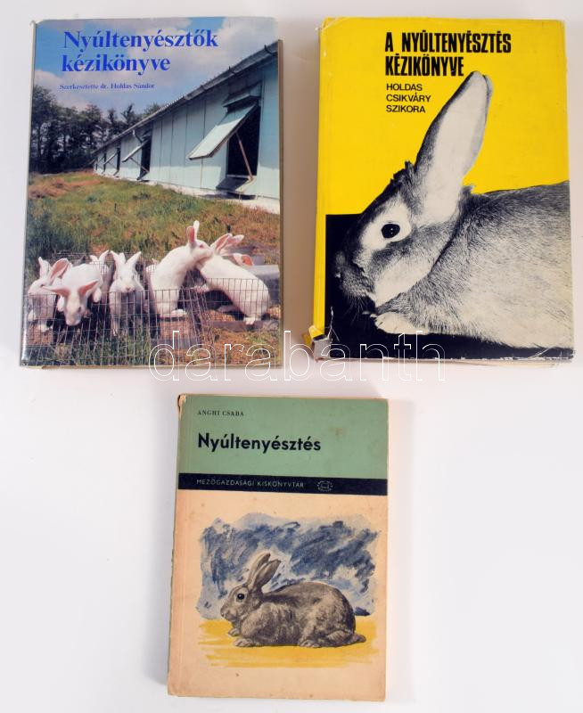 Anghi Csaba: Nyúltenyésztés. A prém-, hús-, angóra- és laboratóriumi kisérleti nyúl tenyésztése, egészségvédelme, értékesítése. Mezőgazdasági Kiskönyvtár. Bp., 1963, Mezőgazdasági Kiadó. Harmadik, átdolgozott és bővített kiadás. Fekete-fehér képanyaggal illusztrált. Kiadói papírkötés, kopott borítóval, sérült gerinccel.;