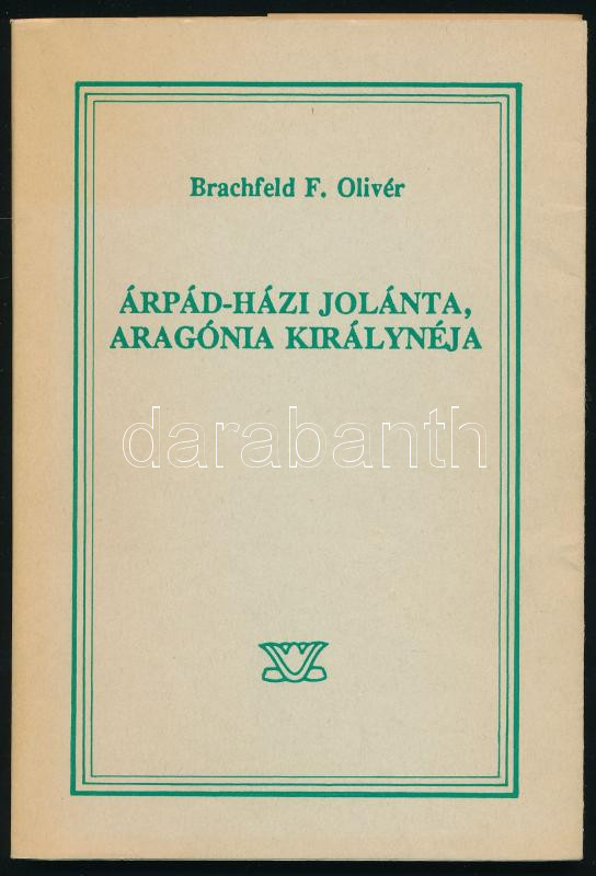 Brachfeld F. Olivér: Árpád-házi Jolánta, Aragónia királynéja. Ford.: Csikós Margit. Szeged, 1994, magánkiadás. Második, javított kiadás. Kiadói papírkötés, kiadói papír védőborítóban, jó állapotban.