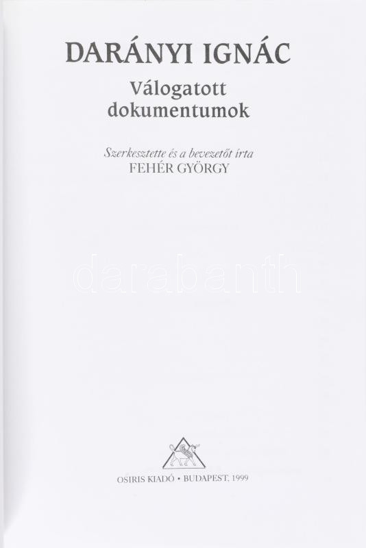 Darányi Ignác: Válogatott dokumentumok. Szerk. és a bevezetőt írta: Fehér György. Bp., 1999, Osiris, 254+1 p.