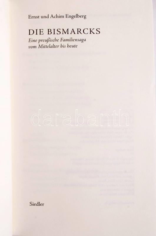 Engelberg, Ernst und Achim: Die Bismarcks. Eine preussische Familiensaga von Mittelalter bis heute. 2010, Siedler. 381p. Kiadói egészvászon kötés, papír védőborítóval, jó állapotban.