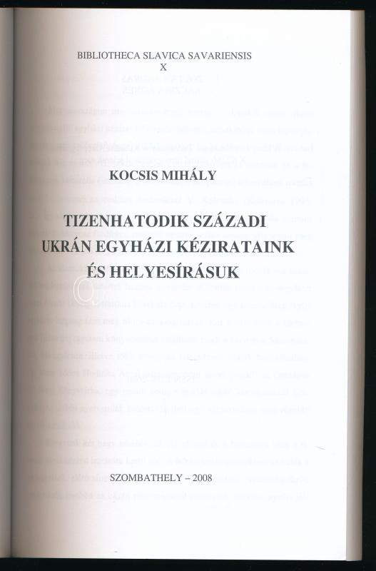 Kocsis Mihály: Tizenhatodik századi ukrán egyházi kézirataink és helyesírásuk. Bibliotheca Slavica Savariensis X. Szombathely, 2008, NYME Savaria Egyetemi Központ BTK Szláv Filológiai Intézet, 325+[11] p. Kiadói papírkötés.