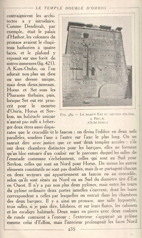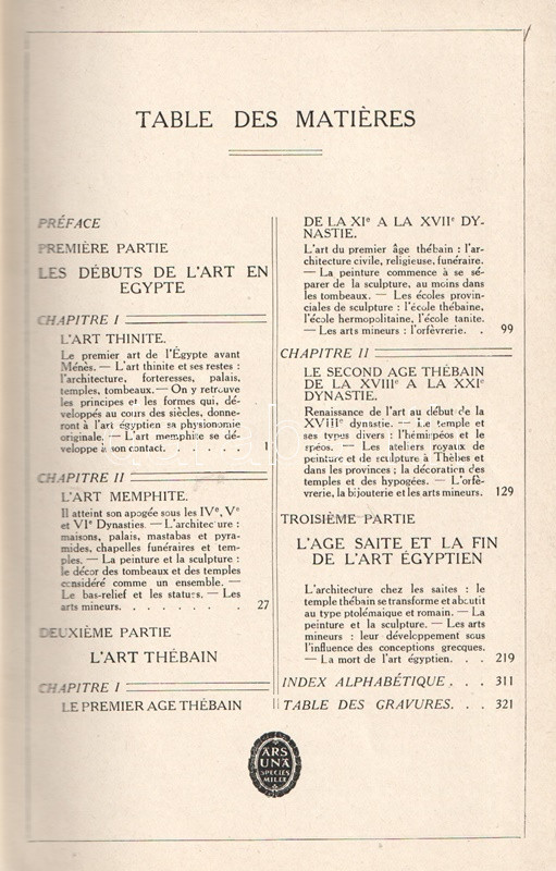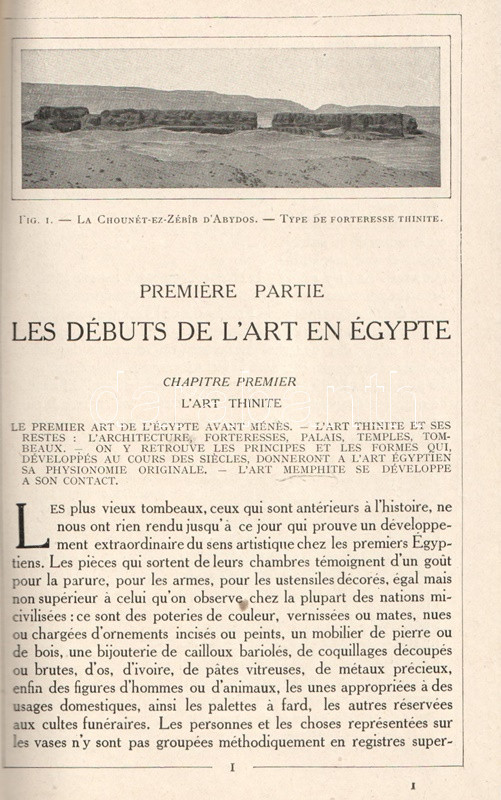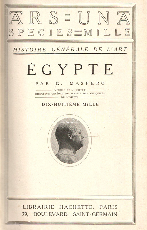 Gaston Maspero (1846-1916) francia egyiptológus, régész, múzeumigazgató. Az Oszmán Birodalom fennhatósága alá tartozó Egyiptom 1879. évi végzetes eladósodása során angol-francia gyámság alá került: az ország gazdasági irányítása angol, kulturális vezetése francia felügyelet alá. A frissen Egyiptomba érkező, ásatásait megkezdő párizsi professzor, Gaston Maspero hamarosan átvette a kairói Bulaq Múzeum és az egyiptomi Nemzeti Régészeti Intézet vezetését. Korszaka az egyiptomi ásatások aranykorának számít, melynek során a kincsfeltárásokkal párhuzamosan számos tudományos kérdésre is válasz született. Jóllehet Gaston Maspero elsődlegesen az ásatások nemzetközi felügyeletével foglalkozott, jónéhány expedícióban maga is részt vett, az egyik piramis kamrarendszerében levő halotti szövegeket ő ismertette meg a nemzetközi nyilvánossággal. Szövegközti régészeti felvételekkel és ásatási alaprajzokkal rendkívül gazdagon illusztrált monográfiája népszerű bevezetés az egyiptológia korabeli eredményeibe. Példányunk az első kiadás utánnyomásából származik, az első kiadással egy időben a munka megjelent német, amerikai, angol, spanyol és olasz kiadásban is.