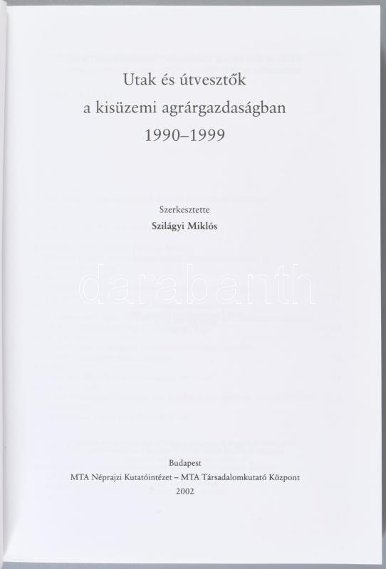 Utak és útvesztők a kisüzemi agrárgazdaságban 1990-1999. Szerk.: Szilágyi Miklós. Rendszerváltás Magyarországon. Műhelytanulmányok. Bp., 2002, MTA Néprajzi Kutatóintézet - MTA Történettudományi Intézet. Kiadói papírkötés.