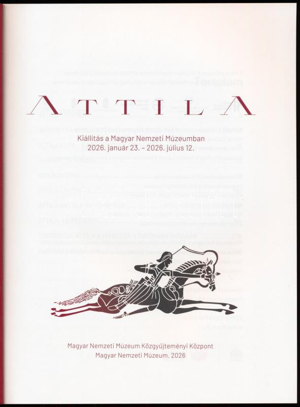 Attila. Kiállítás a Magyar Nemzeti Múzeumban. 2026. január 23. - 2026. július 12. (Kiállítási katalógus.) Szerk.: Campos Mária. Bp., 2026, Magyar Nemzeti Múzeum, 249+[3] p. Kiadói papírkötés.