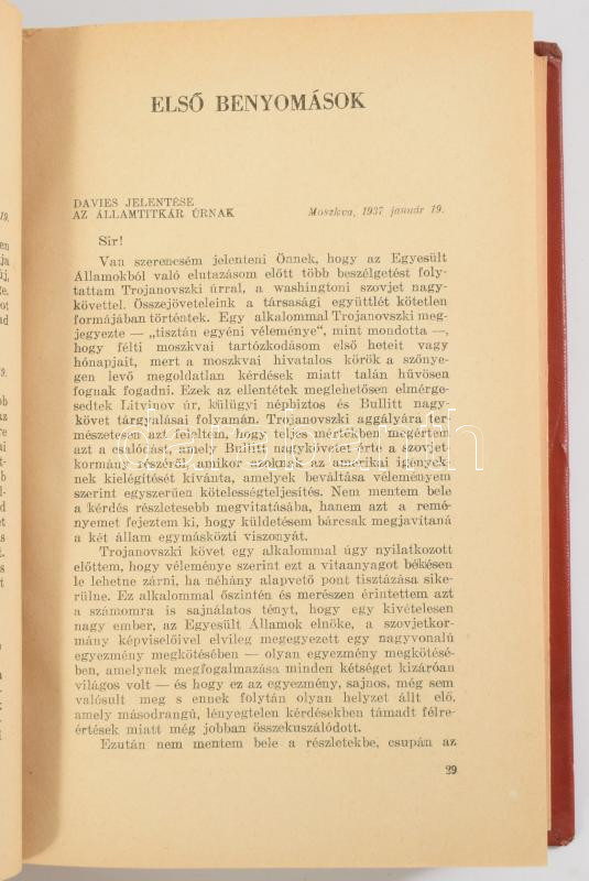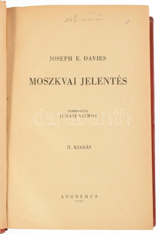 Davies, Joseph E.: Moszkvai jelentés. Bp., 1945, Anonymus, 495 p. Átkötött egészvászon kötésben.