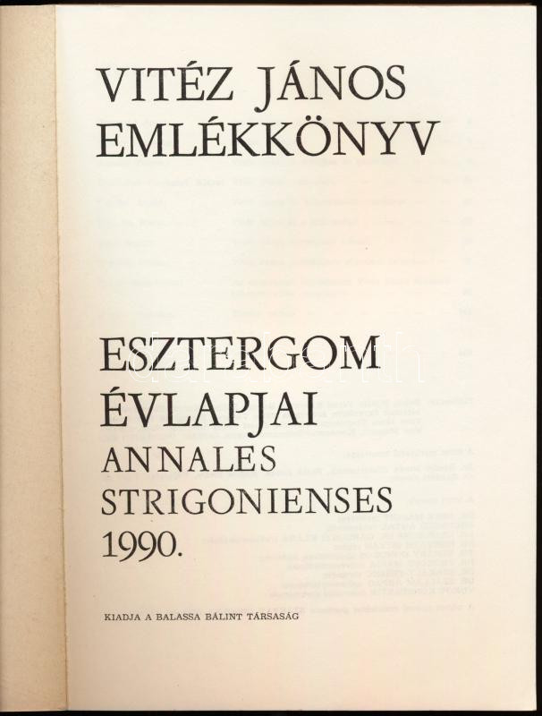 Vitéz János emlékkönyv. Esztergom évlapjai - Annales Strigonienses 1990. [Esztergom, 1990], Balassa Bálint Társaság, 181+[3] p. Kiadói papírkötés. Megjelent 700 példányban.