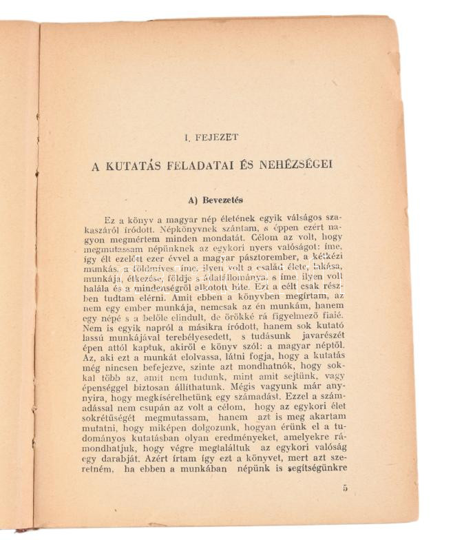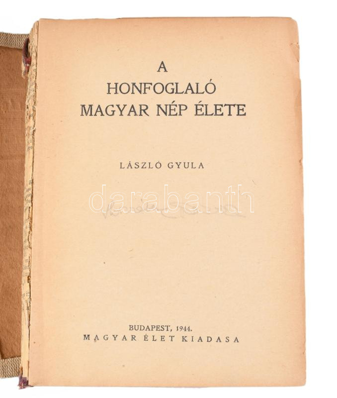 László Gyula: A honfoglaló magyar nép élete. Népkönyvtár 4 sz. Bp., 1944, Magyar Élet, 512 p.+ 2 (kihajtható) t. + 24 t. Első kiadás. Fekete-fehér képekkel illusztrálva. László Gyula (1910-1998) történész, régész őstörténeti munkája régészeti és néprajzi kutatások nyomán kísérli meg feltárni a honfoglaló magyarság életmódját, társadalmi tagozódását és hitvilágát. A kizárólag néprajzi, mitológiai és régészeti adatokra támaszkodó munka a régész-történész nevezetes ,,kettős honfoglalás"-elméletét még nem tartalmazza. Kiadói félvászon-kötés, viseltes, sérült, a könyvtesttől különvált borítóval, helyenként kis lapszéli sérülésekkel.
