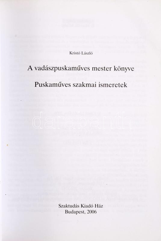Kristó László: A vadászpuskaműves mester könyve. Mestergazda könyvek. Bp., 2006, Szaktudás Kiadó Ház. Kiadói papírkötés, jó állapotban.