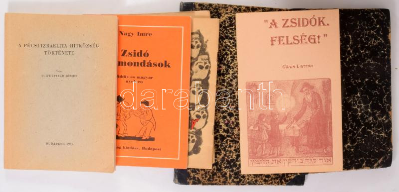 7 db judaika könyv és nyomtatvány - A pécsi izraelita hitközség története, "A zsidók. Felség!", Zsidó közmondások, stb.