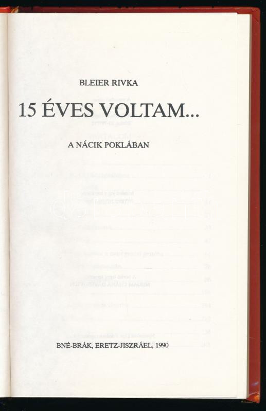 Bleier Rivka: 15 éves voltam... A nácik poklában. Bné-Brák, 1990, szerző, [6]+293+[13] p. Kiadói kartonált papírkötés. Ritka!