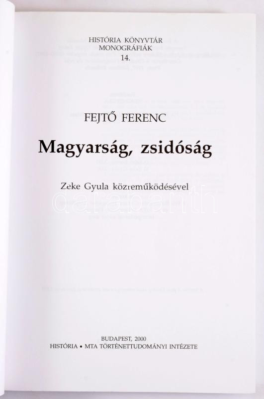 Fejtő Ferenc: Magyarság, zsidóság. Bp., 2000, História - MTA. 338p. Kiadói papírkötés, jó állapotban.