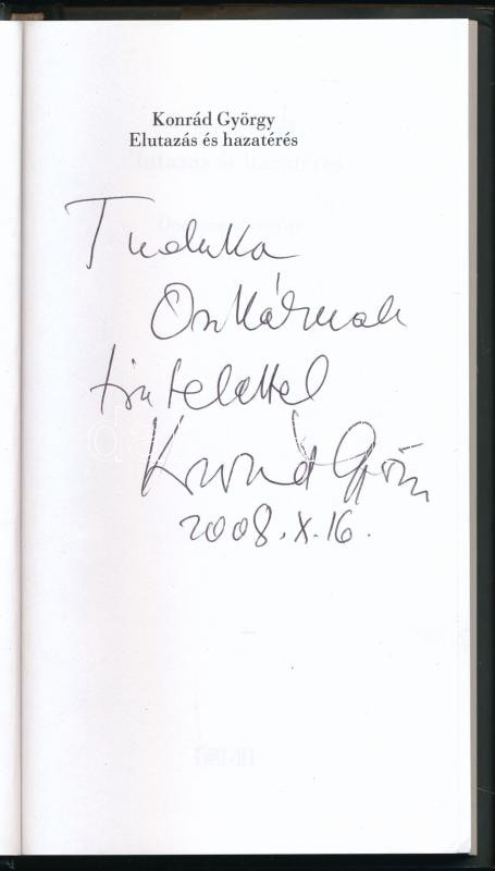 Konrád György: Elutazás és hazatérés. Önéletrajzik regény. DEDIKÁLT! 2002, Noran. 161p. Kiadói kartonált kötés, papír védőborítóval, jó állapotban.
